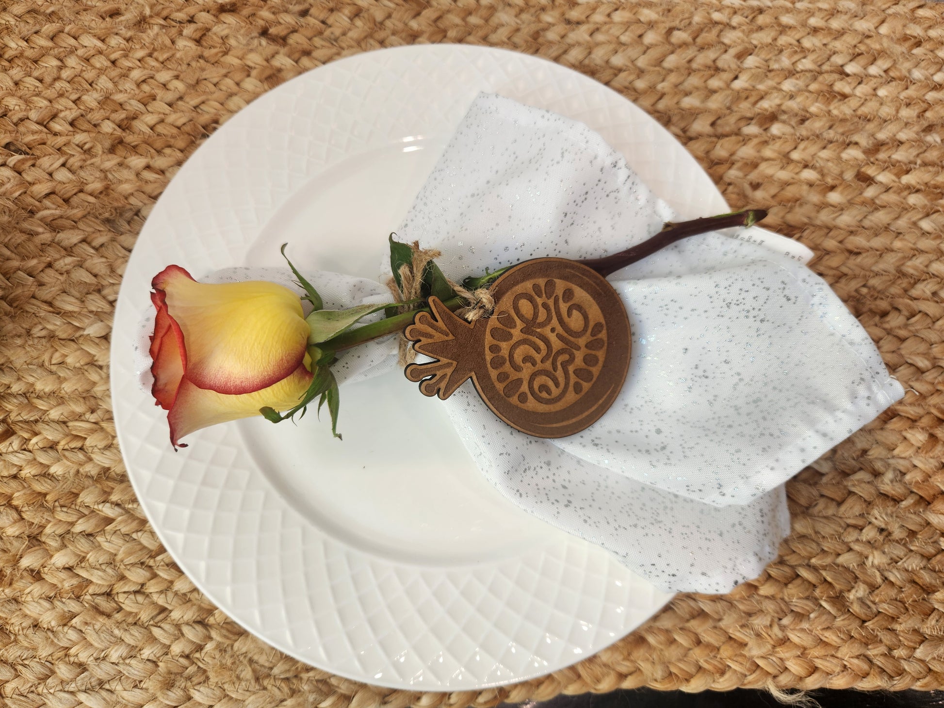 Shana tova set of 5 small deco for the table, bottle .. made on basswood 1\8 (3mm) 11 16". Sealed with a clear protective coat to ensure its long-lasting quality.